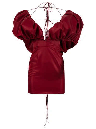 Puff Sleeve Dress With Halter Straps Oxblood