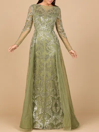 28933 Long Lace Formal Overskirt Evening Dress In Green