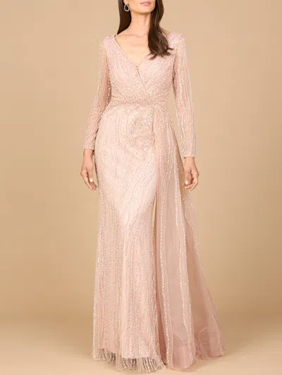 29146 Beaded Long Sleeve Formal Overskirt Dress In Blue