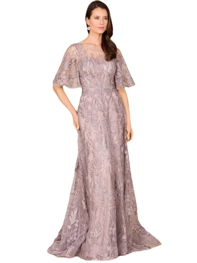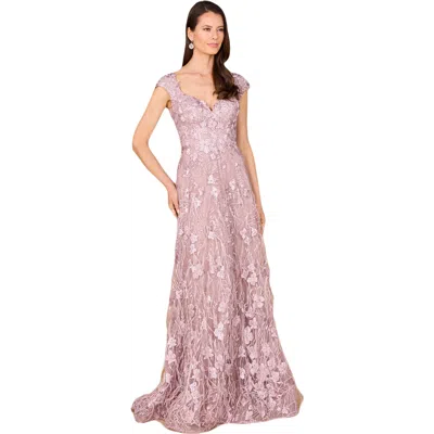 3d Applique Midi Dress With Cap Sleeves In Mauve