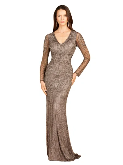 Mermaid, Beaded Long Sleeve Gown In Multi
