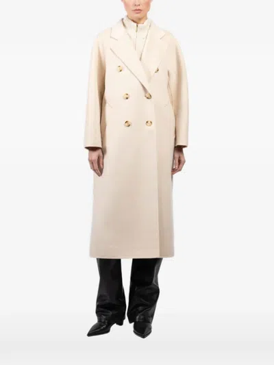 Double-breasted Coat In Neutral