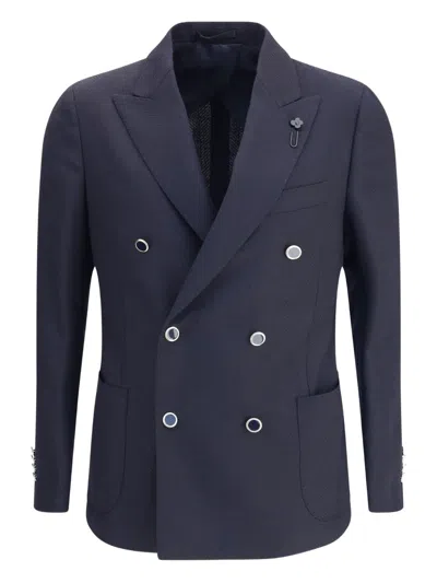 Single-breasted Tailored Black Wool Blend Jacket In Blue