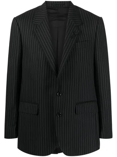 Pinstripe-print Single-breasted Blazer In Black