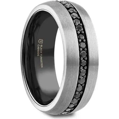 Baroque Titanium Diamond Pattern Wedding Ring In Black