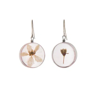 Women's Pink / Neutrals / Silver Sakura Bloom Asymmetric Glass Earrings In Multi