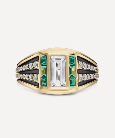 18ct Gold-plated Vermeil Silver Green Stone And White Topaz Statement Ring