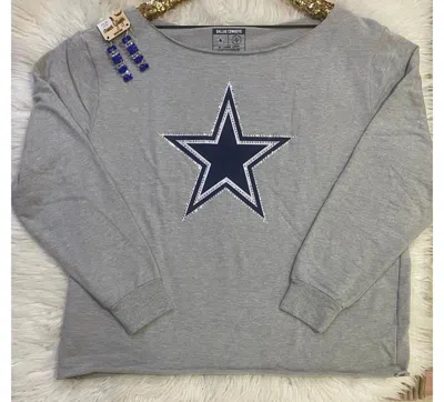 Women's Dallas Cowboys Off-shoulder Rhinestone Sweatshirt In Grey Heather In Gray