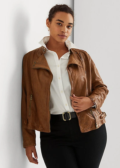 Burnished Leather Moto Jacket In Dark Walnut
