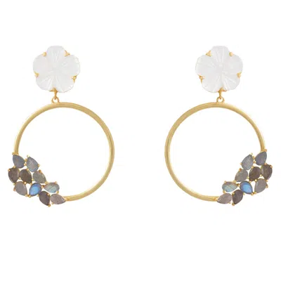 Women's Gold / Blue / White White And Aquamarine Aine Earrings In Neutral