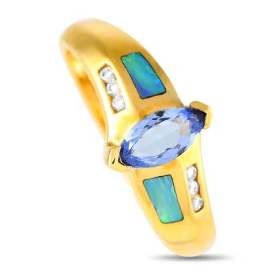 14k Yellow Gold 0.09ct Diamond And Tanzanite Ring Mf02-120424 In Metallic