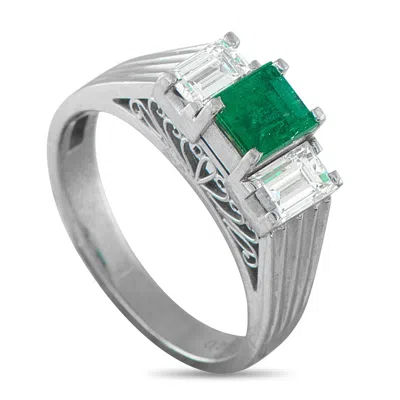 Platinum 0.60ct Diamond And Emerald Ring #5274 In Silver