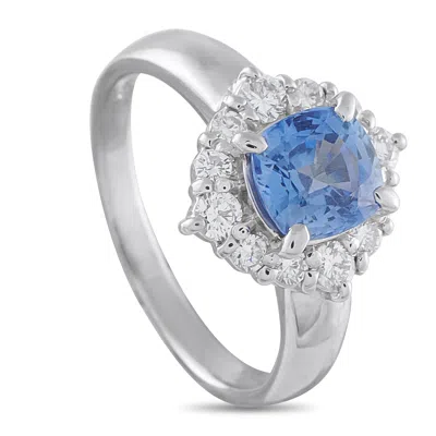 Platinum 1.53 Ct Diamond And 1.26 Ct Sapphire Ring Mf03-110525 In Metallic