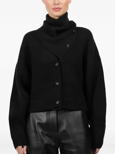 Asymmetric-neck Buttoned Cardigan In Black