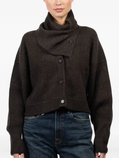 Button-fastening Funnel-neck Cardigan In Brown