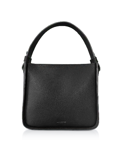 Women's Duplo Medium Black Hammered Leather Top Handle Bag