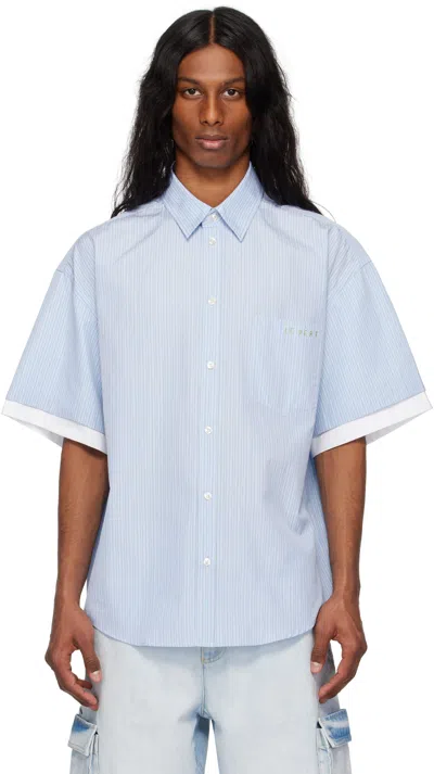 Blue Double Short Sleeve Button Down Shirt In Blue Stripe