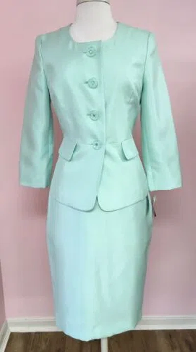 Pre-owned $200 12p Pretty Mint Green Satin Skirt Jacket Womens Designer Suit
