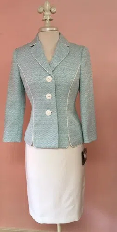 Pre-owned $200 4 Pretty Tweed Blue White Skirt Jacket Womens Designer Suit