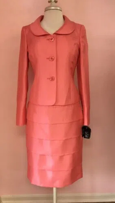 Pre-owned $200 6 Pretty Coral Satin Tiered Skirt Jacket Womens Designer Suit In Pink