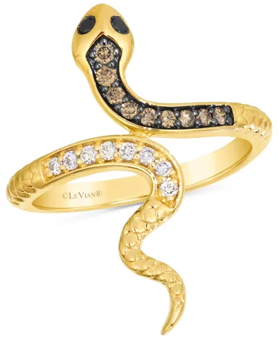 Chocolate Diamond, Nude Diamond, & Blackberry Diamond Snake Ring (1/4 Ct. T.w.) In 14k Gold In Yellow Gold