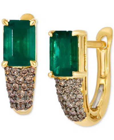 New Emerald (1-2/5 Ct. T.w.) & Chocolate Diamond (1/4 Ct. T.w.) Leverback Earrings In 14k Gold In Yellow Gold