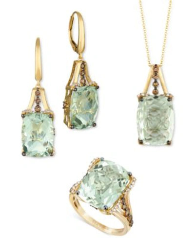 Mint Julep Quartz Diamond Drop Earrings Necklace Ring Collection In 14k Gold