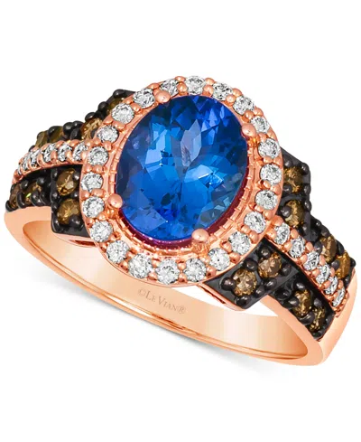Blueberry Tanzanite (1-5/8 Ct. T.w.) & Diamond (5/8 Ct. T.w.) Oval Hao Ring In 14k Rose Gold