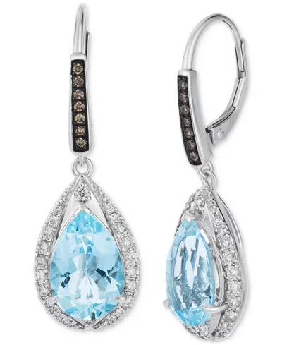 Sea Blue Aquamarine (4-5/8 Ct. T.w.) & Diamond (1/2 Ct. T.w.) Pear Halo Leverback Drop Earrings In 1 In White Gold