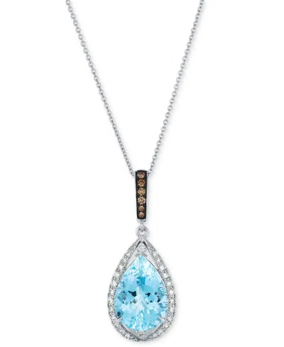 Sea Blue Aquamarine (5 Ct. T.w.) & Diamond (1/3 Ct. T.w.) Pear Halo Adjustable 20" Pendant Necklace In White Gold