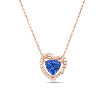 Ladies Blueberry Tanzantine Heart Collection Necklaces Set In 14k Strawberry Gold