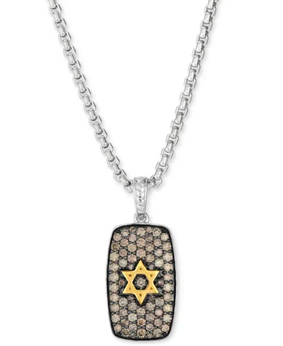 Men's Chocolate Diamond Star Of David Dog Tag 22" Pendant Necklace (1-3/4 Ct. T.w.) In Sterling Silv In Silver