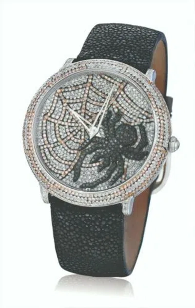 Pre-owned Levian Stainless Steel Black Diamond 6.06 Cts Spider Web Watch