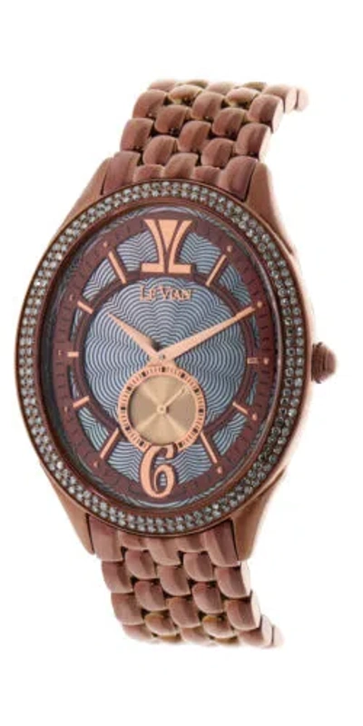 Pre-owned Levian Watch Featuring Chocolate Quartz In Gold Stainless Steel Strap