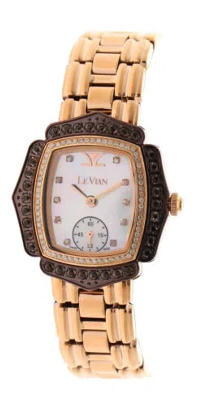 Pre-owned Levian Watch Featuring Chocolate Diamonds In Gold Stainless Steel Strap