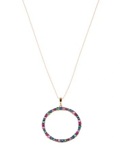 Pre-owned 14k Sapphire, Emerald & Ruby Circle Pendant Necklace, 20" In Multi