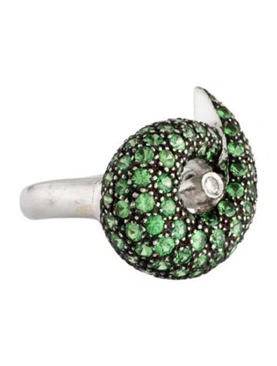 Pre-owned 18k Tsavorite Garnet & Diamond Cocktail Ring In Multi