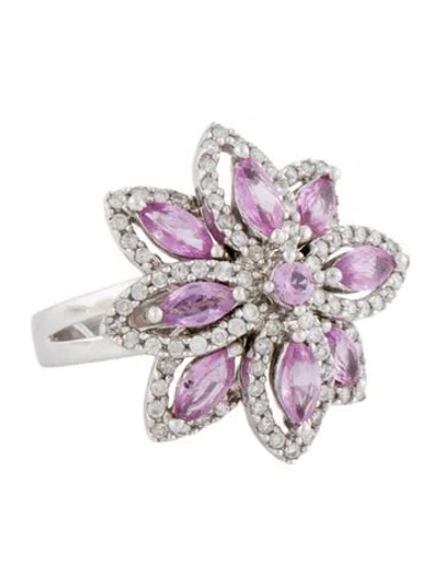 Pre-owned 14k 2.07ctw Pink Sapphire & Diamond Flower Cocktail Ring In Multi