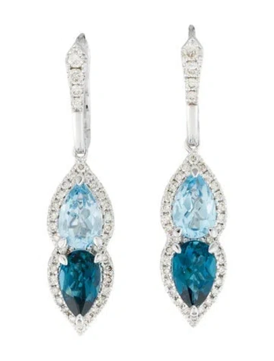 Pre-owned 14k Topaz & Diamond Drop Earrings In Multi