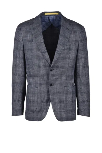 Grey/black Polyester Viscose Jacket Men's In Blue