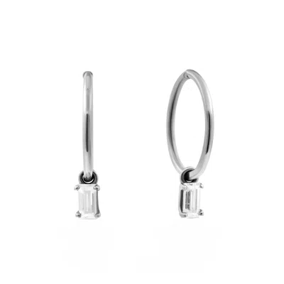 Women's Diamond Heart Clicker Hoop Earrings - Silver