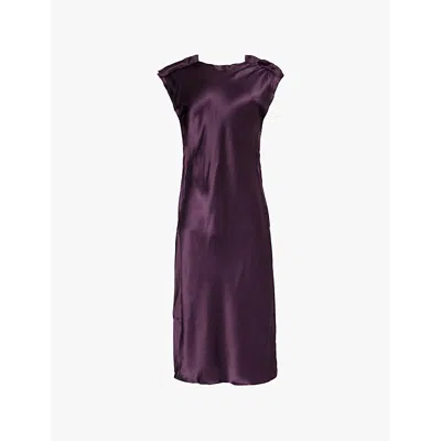 Womens Batwing-sleeve Satin Midi Dress Grey