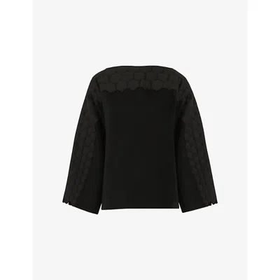 Womens Black Mesh-sleeve Knitted Jumper Xl