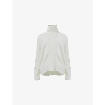 Womens White Ribbed High-neck Knitted Jumper