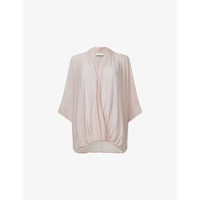 Womens Wrap-detail Short-sleeve Jersey Top In Pink