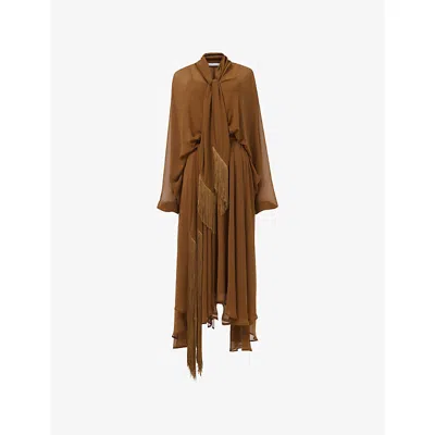 Womens Fringed-trim Woven Midi Dress In Yellow