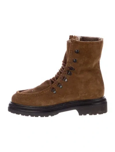 Pre-owned Suede Faux Fur Trim Combat Boots In Brown