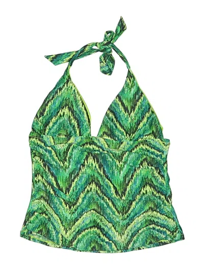 Pre-owned Swimsuit Top Green Chevron/herringbone Pattern Swimwear