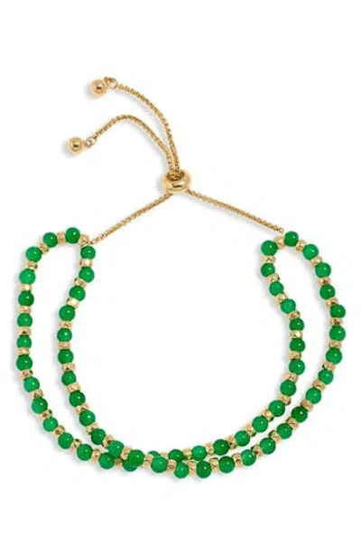 Beaded 2-row Slider Bracelet In Green- Gold