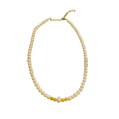 Women's Neutrals Pearl & Yellow Jade Necklace